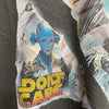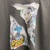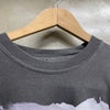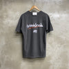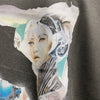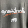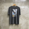 古着のような少しやれ感がある黒ボディーに、洗練された日本のサブカルチャーを連想させるようなグラフィックがデザインされた一着。オーバーサイズでの着こなしが、独特のシルエットを生み出します。バックのネック部分のブランドタグは、糸で縫い付けられていますが外すことが可能です。