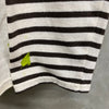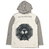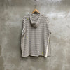 古着特有のざらつきのある上質なコットンを再現したボートネックタイプのフーディー仕様のマリンカットソー。フロントには河村康輔デザインによるシュレッダーアートをオン。プリント面以外はボーダー生地を採用することでマリンの雰囲気を感じさせる仕上がりに。