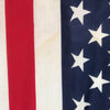 白線と赤線の組み合わせの13本の横縞(赤7本と白6本、したがって上下は赤)、四角に区切った左上部は青地に50の白い星が配置されている。白は purity(純粋)とinnocence(純潔),赤は hardiness(たくましさ)とvalor(勇気),青はvigilance(戒心)とperseverance(忍耐)とjustice(正義)を表す。また縞模様は独立当時の13の入植地を表し、星は現在の州を表している。この「青地に白い星」と「赤と白の条」の組み合わせは、アメリカ合衆国をイメージするあらゆるシンボルに使用されている。