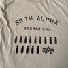 米軍払い下げの90年〜近年までのUSED PFU Tシャツに一枚一枚ステンシルペイントが施された一枚。正面に、第59 アルファ ボンバースコードロンの敵機撃墜を祝すデザインと、背面には架空のミリタリーSPECラベルのデザインがペイントされている。