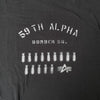 米軍払い下げの90年〜近年までのUSED PFU Tシャツに一枚一枚ステンシルペイントが施された一枚。正面に、第59 アルファ ボンバースコードロンの敵機撃墜を祝すデザインと、背面には架空のミリタリーSPECラベルのデザインがペイントされている。