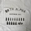 米軍払い下げの90年〜近年までのUSED PFU Tシャツに一枚一枚ステンシルペイントが施された一枚。正面に、第59 アルファ ボンバースコードロンの敵機撃墜を祝すデザインと、背面には架空のミリタリーSPECラベルのデザインがペイントされている。