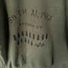 アメリカブランドのPULL OVER SWEAT PARKAのボディを使用しています。正面に、架空のミリタリーSPECラベルのデザインにポケット部分にアルファロゴとRE:SUPPLY、背面には第59 アルファ ボンバースコードロンの敵機撃墜を祝すデザインがペイントされている。
