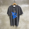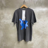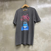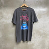 ビンテージ加工が施されたボディーに、日本のサブカルチャーを連想させるようなグラフィックがデザインされた一着。オーバーサイズでの着こなしが、独特のシルエットを生み出します。バックのネック部分のブランドタグは、糸で縫い付けられていますが外すことが可能です。