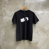 ホワイト・ボディは赤、青、黒のインクを染み込ませたプリントにウォッシュ+ドライでヴィンテージ仕様に仕上げました。ブラック・ボディは厚めの白インクを経年のクラック加工した上でウォッシュ+ドライを施しています。