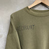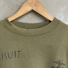 裏起毛のスウェットで、左胸にUSMCのロゴとEGA紋章プリントが入っています。RECRUITと手書きが書かれており、実用されていた背景が連想されます。