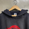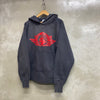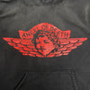 日本の加工技術を駆使し、ダメージや汚れまたプリントのひび割れ等、ビンテージ加工を施しなんども着倒した風合いを演出したヴィンテージ感溢れる拘りの詰まったHOODIEです。正面にエンジェルのプリントが大きく入っています。背面にはブランド名が入っています。