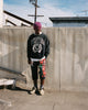 日本の加工技術を駆使し、洗い汚しによるビンテージ加工を施しなんども着倒した風合いを演出したスェットシャツ。SAINT MICHAEL x DENIM TEARSのコラボレーションアイテム。