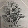 以前のシリーズと異なる、新たな生地を作成しておりゆるく編まれているため、よりビンテージに近い生地感になっている。首元以外は2本針縫いで、それ以外は4本針で縫われており、ステッチだけでも存在感抜群である。花と花言葉のデザインも染み込みプリントとなっており、着用と共に毛羽立ち味が出てくる仕様となっている。