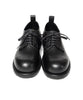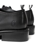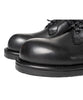 ミリタリーミッキーブーツからインスパイアされた木型を使用したシンプルな外羽根シューズ。新たなブランドのアイコンとなりつつあるWALTもアップデートして継続。 特徴的な木型のラインを活かすべくディテールを削ぎ落として仕上げた1足。またコバ幅を通常より大きくとることで木型のラインが強調されている。 側面まで一体感のある見た目に仕上がっているのはソールとアッパーの間にある押渕にアッパー素材を使用することで実現。 中敷き下に厚みのあるクッション材を入れることで、革底ながら柔らかく快適な履き心地。