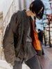 保温性を高めるジッパー内側の比翼や、袖のUTILITY POCKET など、ペンタゴン納入メーカーならではの本物のディテールが組み込まれている。背中にはミルスペック対応のステンシルマシーンによってできたフォントでプリントされています。
