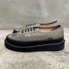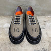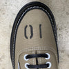 つま先部分にはミリタリーのドレスシューズやボウリングシューズ等で見受けられる様に、靴のサイズをステンシルで1つ1つ吹き付けています。ANEXのVANSフリークの方達のネクストステップとして提案します。ビジネスやドレスアップした際にも履いていけるVANSをイメージしました。靴紐はラバーコーティングされた物に変更しました。靴箱はリクチュール式で既存のVANSのBOXを裏返して、リクチュールのテープを貼りつけています。完全1点モノです。