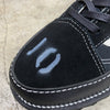 つま先部分にはミリタリーのドレスシューズやボウリングシューズ等で見受けられる様に、靴のサイズをステンシルで1つ1つ吹き付けています。ANEXのVANSフリークの方達のネクストステップとして提案します。ビジネスやドレスアップした際にも履いていけるVANSをイメージしました。靴紐はラバーコーティングされた物に変更しました。靴箱はリクチュール式で既存のVANSのBOXを裏返して、リクチュールのテープを貼りつけています。完全1点モノです。