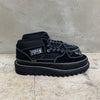 つま先部分にはミリタリーのドレスシューズやボウリングシューズ等で見受けられる様に、靴のサイズをステンシルで1つ1つ吹き付けています。ANEXのVANSフリークの方達のネクストステップとして提案します。ビジネスやドレスアップした際にも履いていけるVANSをイメージしました。靴紐はラバーコーティングされた物に変更しました。靴箱はリクチュール式で既存のVANSのBOXを裏返して、リクチュールのテープを貼りつけています。完全1点モノです。