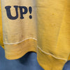 日本の加工技術を駆使し、洗い汚しによるビンテージ加工を施し、なんども着倒した風合いを演出したスウェットシャツ。フロント,バックにプリント有り。