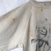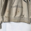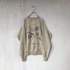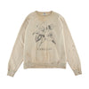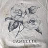 日本の加工技術を駆使し、洗い汚しによるビンテージ加工を施し、なんども着倒した風合いを演出したラグランスウェットシャツ。フロントには椿、バックには花言葉がプリントされています。
