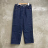 腰回りからそのままストンと落ちる太めのストレートシルエットで、クッションさせて穿いても程よいボリューム感です。