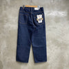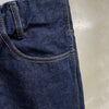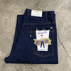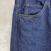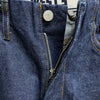 非常にバランスの良い形で、ちょうど今の気分だった...という方も多いのではないでしょか。敢えて生地の耳を使わず、アウト、インそれぞれのシームでカーブを取りシルエットを調整することで、穿いて、立体になったときの美しい形を実現。更に膝の位置を少し高くすることで、O脚に見え難い設計です。オーバーオールの胸元のビブを切り取って生まれたと言われるジーンズの成り立ちを元に、ベルト布を排したデザインや、一部のステッチや閂止めをボディと同色にすることで、非常にモダンな印象なのも特徴の一つ。