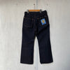 50年代に生産された世界最古のデザイナーズジーンズWRANGLERの11MWZをオマージュした若干ゆとりのあるフレア5ポケットデニムパンツ。