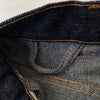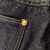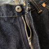 素材には当時のデニム地をオマージュして旧シャトル機で織り上げた、左綾織りのキバタと呼ばれる14ozピュアインディゴデニムを使用しています。