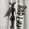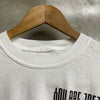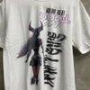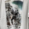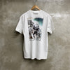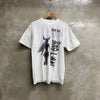 古着のような少しやれ感がある白ボディーに、洗練された日本のサブカルチャーを連想させるようなグラフィックがデザインされた一着。オーバーサイズでの着こなしが、独特のシルエットを生み出します。バックのネック部分のブランドタグは、糸で縫い付けられていますが外すことが可能です。