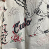 Kanye West(カニエ・ウェスト)のマーチャンダイズデザインを思い浮かべる方も多いかもしれないが、アメリカ・ロサンゼルスを拠点とする重鎮アーティスト。ある時は音楽レーベル「Teenage Teardrops(ティーンエイジ ティアドロップス)」のオーナー、ある時は〈Some Ware(サム ウェア)〉のデザイナー、ある時はファッションブランドへのグラフィック提供、ある時はミュージックビデオの監督、ある時はフォトグラファーなど、その活動形態を特定の肩書きで括ることは難しい。多数のプロジェクトを遂行するCaliは、アンダーグラウンドからメインストリームまでを自在に行き来する稀有な存在でもある。